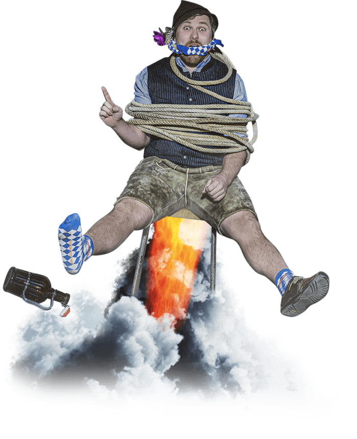Daraus entstand der Horrido Express. Zunächst zu zweit, später zu dritt, mit unserem Beeni. Zu einer Zeit, in der die Lederhosn noch belächelt wurde und uns keiner so richtig für voll nahm, tingelten wir mit unserem Gschbusi* heimliche Geliebte eines Musikanten – Musi – Trio umanana* umher/herum . Damals noch keine Ahnung vom Leben, der Welt und vor allem der Musik, wuchsen wir jedoch schnell mit unseren Aufgaben und haben uns zu dem entwickelt, was wir heute sind – ein gaaanz besonderes Erlebnis. Getreu unserer Philosophie „Heute buchen, morgen fluchen“, ruinieren wir jedes Fest, egal ob Hochzeit, Bierzelt oder Geburtstagsfeier.